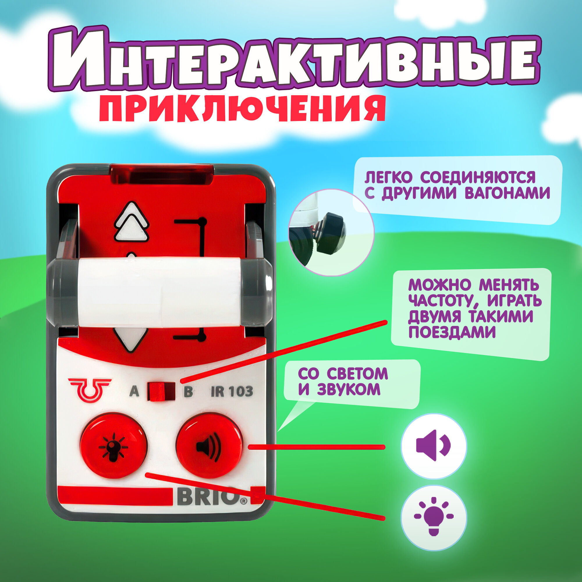 Купить Поезд пассажирский BRIO, на дистанционном управлении, на батарейках 4 детали с доставкой по всей России.