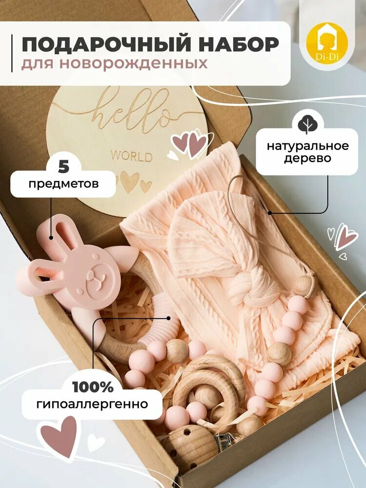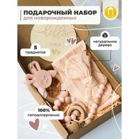 Купить Погремушка для новорожденного 0+, набор подарочный, игрушки для новорожденных от 0, деревянные игрушки развивающие для малышей, монтессори, подарок для девочки с доставкой по всей России.