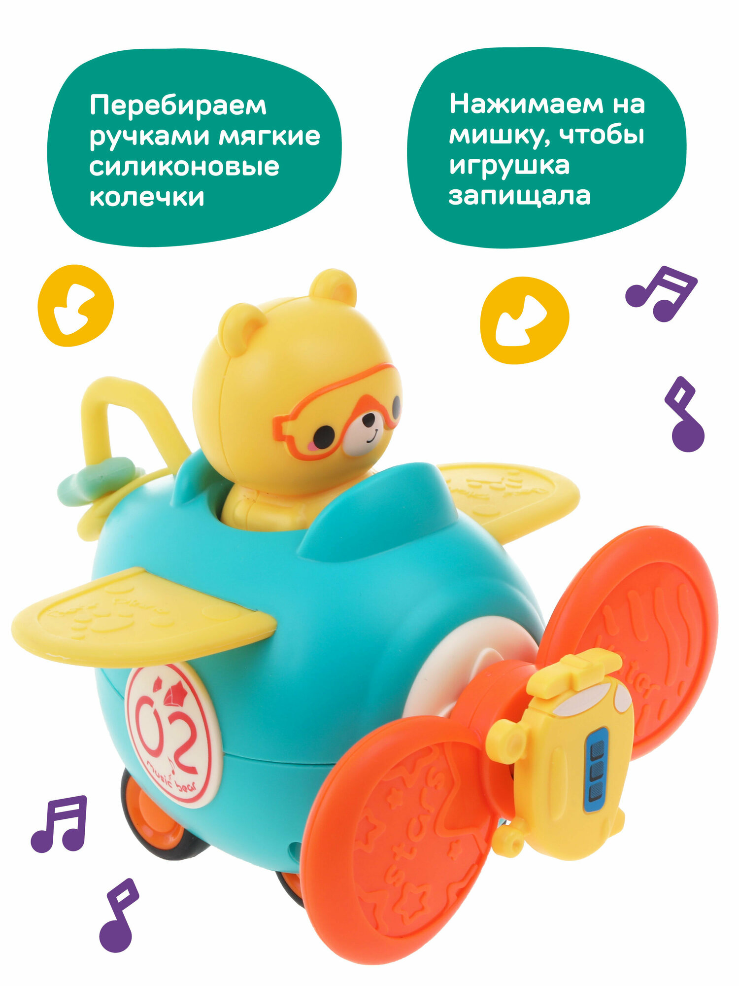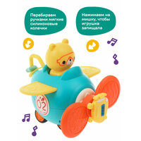 Развивающая игрушка для детей "Самолётик" от бренда "Жирафики" - это многофункциональный набор для малышей от 12 месяцев. В собранном виде игрушка представляет собой самолет на присоске, который можно установить перед ребенком и нажимать на мишку-пилота, чтобы услышать веселый пищащий звук.