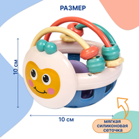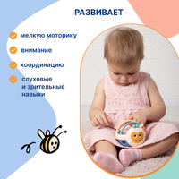 Погремушка - это первая игрушка малыша. Красочный предмет знакомит новорождённого с окружающим миром. Он развивает у ребёнка пространственное мышление, а также слуховое, зрительное и тактильное восприятие. Звук в модели появляется при встряхивании. Причудливая форма надолго займёт внимание карапуза. Погремушку удобно использовать: лёгкая вещица подходит для захвата маленькими ладошками. Товар изготовлен из нетоксичного пластика. Безопасность и качество изделия подтверждены сертификатом соответствия ЕАС. Использование игрушки детьми разрешено только под присмотром взрослых.