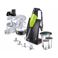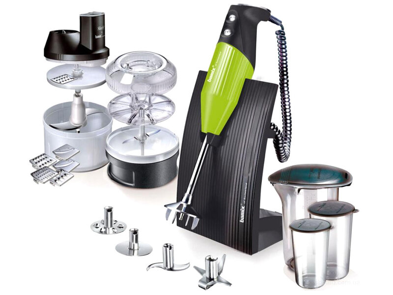 Блендеры bamix® - первые в мире ручных кухонных комбайнов, сочетающие в себе высокую мощность и компактный размер. Основной конструктивной особенностью блендеров bamix® является AC-Мотор переменного тока и прямой привод вала, которые обеспечивают их высокую надежность и долговечность. Мотор bamix® электронно сбалансирован, что приводит к отсутствию вибрации, низкому уровню шума и долгому сроку службы. Все материалы bamix® экологичны, безопасны для здоровья и окружающей среды. Корпус погружного блендера bamix® состоит из прочного материала нейлон. Нейлон - износостойкий, легкий, не деформируется, не впитывает запахи и не окрашивается. Ножка блендера изготовлена из высококачественной оцинкованной латуни, которая прослужит долгие годы. ------------------------------------------------------------------------------------------ Серия SuperBox Мощный набор в максимальной комплектации Надежность и эффективность на вашей кухне ------------------------------------------------------------------------------------------ характеристики: Мощность - 200 Вт Количество скоростей - 2 Скорость 1 об/мин - 12 000 Скорость 2 об/мин - 17 000 Материал корпуса - нейлон Материал погружной части - оцинкованная латунь Материал лезвий - нержавеющая сталь Высота блендера: 34,5 см Длина металлической ножки: 13,5 см Цвет – лайм Вес блендера - 940 гр. ------------------------------------------------------------------------------------------ комплектация: · Мини-комбайн SliceSy - применяется для приготовления салатов: нарезки и шинковки фруктовых и овощных ломтиков, а также для рубки больших объемов мяса, овощей, рыбы. Он очень прост в использовании, а все его детали (за исключением крышки) можно мыть в посудомоечной машине; · Процессор (200 мл) - предназначен для измельчения различных специй и приправ, приготовления сахарной пудры и свежайшего молотого кофе, подходит для измельчения ванили и корицы. Процессор прекрасно измельчает твердый сыр, все виды орехов, шоколад. Быстро и легко чистится, занимает мало места на кухне, всегда готов к быстрому и эффективному использованию; · Растирочный диск - является важной частью процессора bamix®. Он предназначен для измельчения сухих пищевых продуктов. С растирочным диском вы сможете перетереть специи в пыль или приготовить сахарную пудру без особых усилий, всего за 30 секунд; · Насадка многофункциональная - предназначена для рубки и измельчения сырых, вареных овощей, фруктов, ягод, как свежих, так и замороженных, приготовления пюре, мороженного, щербета. Позволяет крошить кубики льда. Идеально подходит для приготовления детского питания и супов на основе свежих овощей; · Насадка для смешивания - применяется для смешивания и взбивания шейков, напитков, соусов, омлета, блинного теста, майонеза, супа-пюре, косметических эмульсий; · Насадка для взбивания - предназначена для взбивания сливок и яичного белка, создания эмульсий и смешивания соусов, для замешивания легкого сдобного теста; · Нож для рубки мяса и овощей - незаменимый помощник на каждой кухне. Идеально подходит для резки малых объёмов мяса или рыбы. Может использоваться для резки длинноволокнистых овощей, таких как сельдерей, спаржа и фенхель; · Кувшин (1000 мл) - отлично подходит для работы с блендером, изготовлен из высококачественного материала тритан - легкого, небьющегося, ударопрочного; · Подставка - стильная и компактная, она позволит держать блендер и аксессуары под рукой в удобном для вас месте