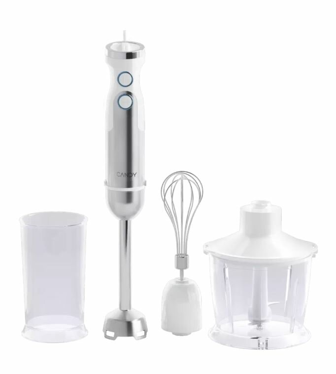 Купить Погружной блендер CANDY CB-200, белый/серебро, 1200Вт, венчик, мерный стакан с доставкой по всей России.