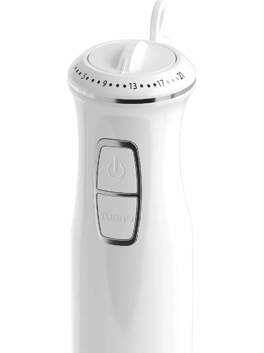 Купить Погружной блендер Candy CB-202 1200 Вт, плавная регулировка скорости, 21 скорость, турбо режим, 2 ножа, 3 насадки, мерный стакан 600 мл и измельчитель 800 мл с доставкой по всей России.