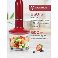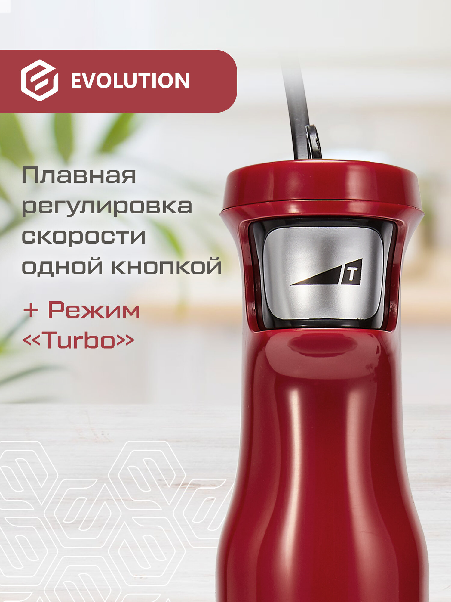 | Дополнительная информация | Погружной блендер EVOLUTION HBS-1341 Red — многофункциональное устройство 5 в 1 с мощностью до 1500 Вт. Снабжен насадками для блендинга, взбивания, измельчения и вспенивания молока. Легко моется в посудомоечной машине. Обеспечивает безопасность системой автоматического отключения при перегреве. Работает в системе Умный дом Нет Экосистема Умного дома Не применимо |