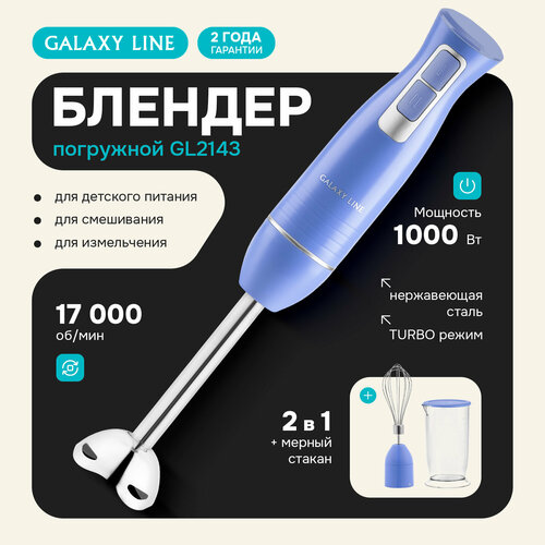 Купить Погружной блендер Galaxy Line GL2143, 1000Вт, защита от перегрева, 2 скорости, голубой с доставкой по всей России. Погружной блендер Galaxy Line GL2143, 1000Вт, защита от перегрева, 2 скорости, голубой: сравнение цен, характеристики, фото, актуальное наличие и цены.
