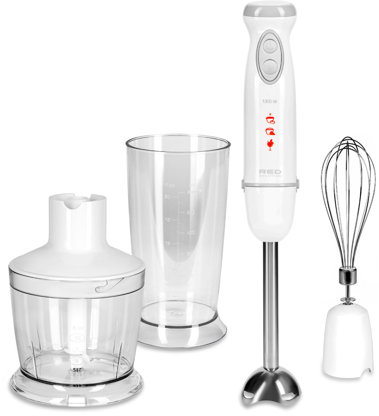 В комплектации этого блендера от RED вы найдете всё необходимое и даже больше: