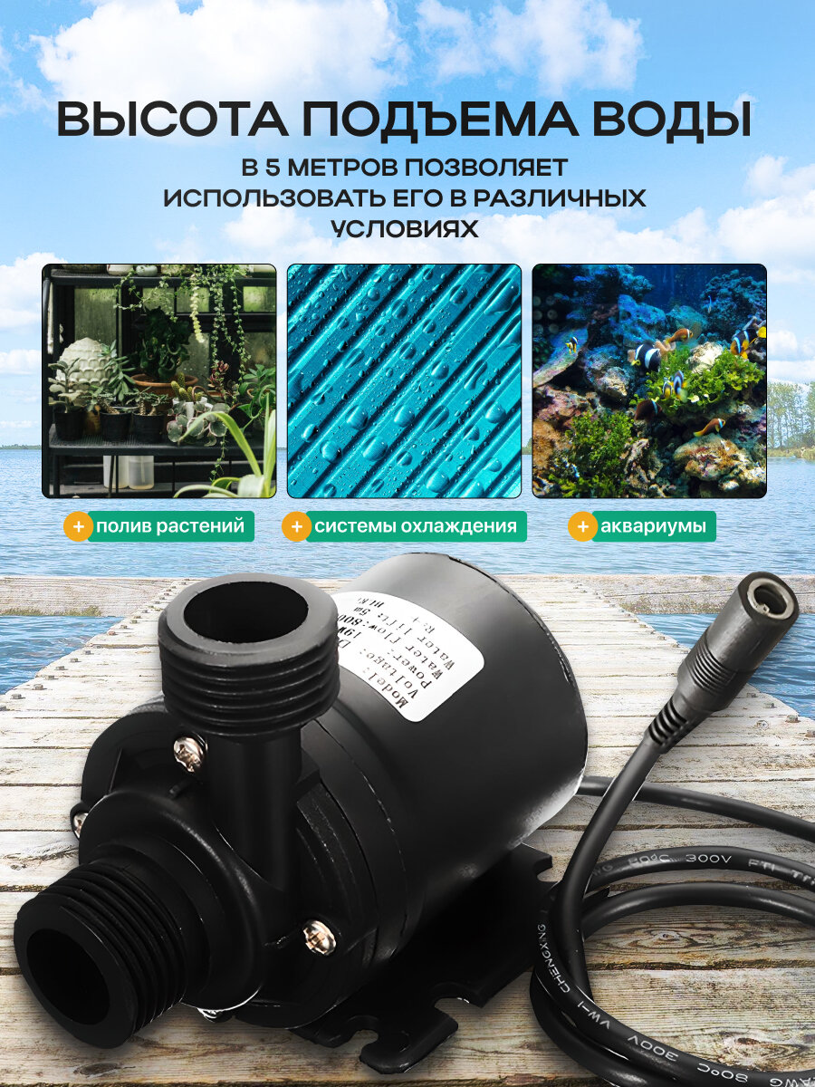 Погружной мини-насос для воды "Pumper" 12v 19w, можно использовать в различных условиях, будь то полив растений, аквариумы или системы охлаждения. С потоком воды до 800 мл/час и мощностью 19 Вт, водяной погружной насос способен быстро и эффективно справляться с задачами по перекачиванию воды. Благодаря бесщеточному мотору, устройство работает тихо и не создает дискомфорта. Длина кабеля 50 см обеспечивает удобство подключения и гибкость в установке. Максимальная температура перекачиваемой жидкости составляет +35°C. Садовое электрическое оборудование для пруда разработано для долговечной работы несколько сезонов без проблем. Вода, подаваемая насосом, должна быть чистой и не содержать волокнистых или абразивных частиц. Допустимая концентрация твердых частиц в жидкости при откачке не должна превышать 150 г/м³. Поверхностный дренажный электронасос компактен, легок и удобен в установке, эксплуатации и обслуживании. Адаптер питания в комплект не входит. Размеры насоса: - Длина: 77мм; - Высота: 61мм; - Ширина:49мм; Рекомендации: Для стабильной работы и высокой производительности насоса необходимо: - Напряжение питания 12 вольт; - Мощность источника питания должна быть не меньше 19 Ватт.