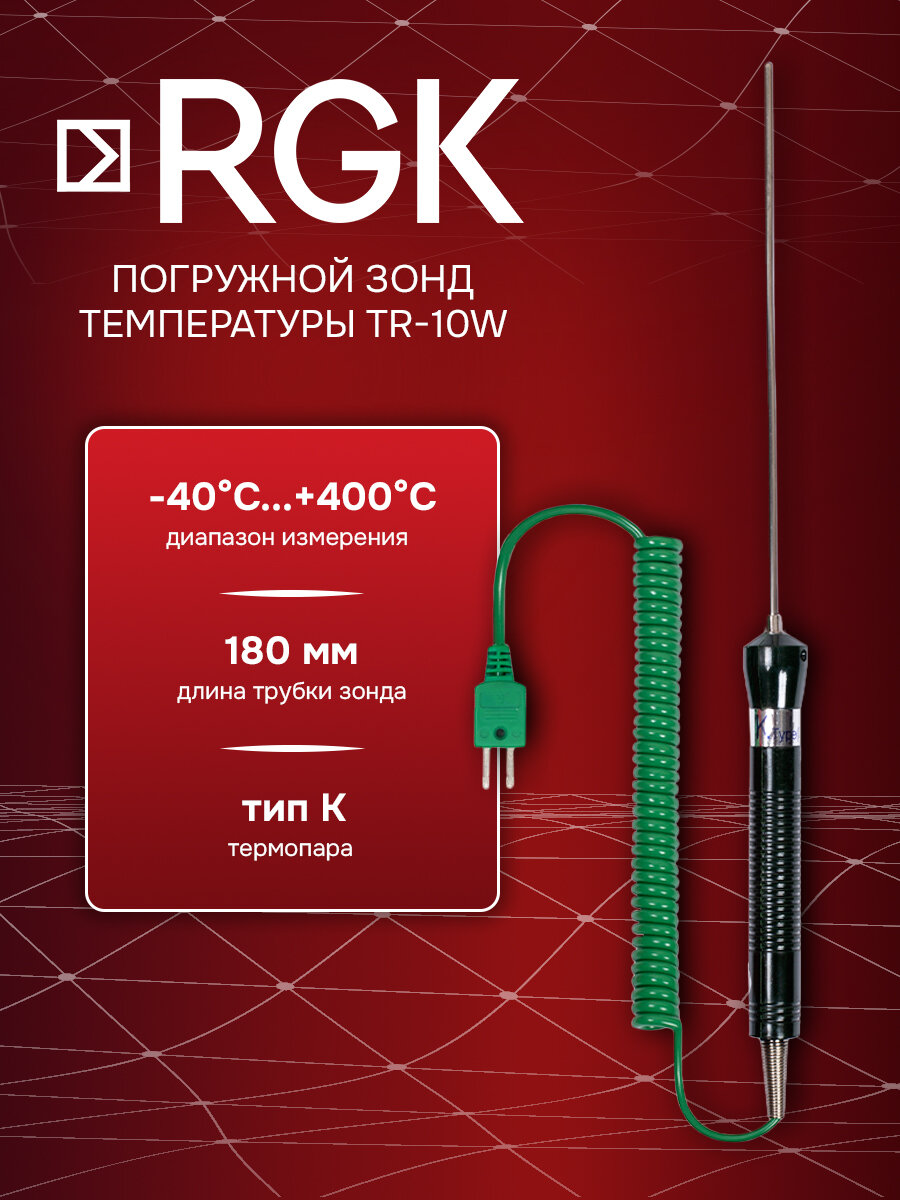 Купить Погружной зонд RGK TR-10W, для жидкостей, от -40°С до 400°С, точность ±2°C, длина 180мм с доставкой по всей России.