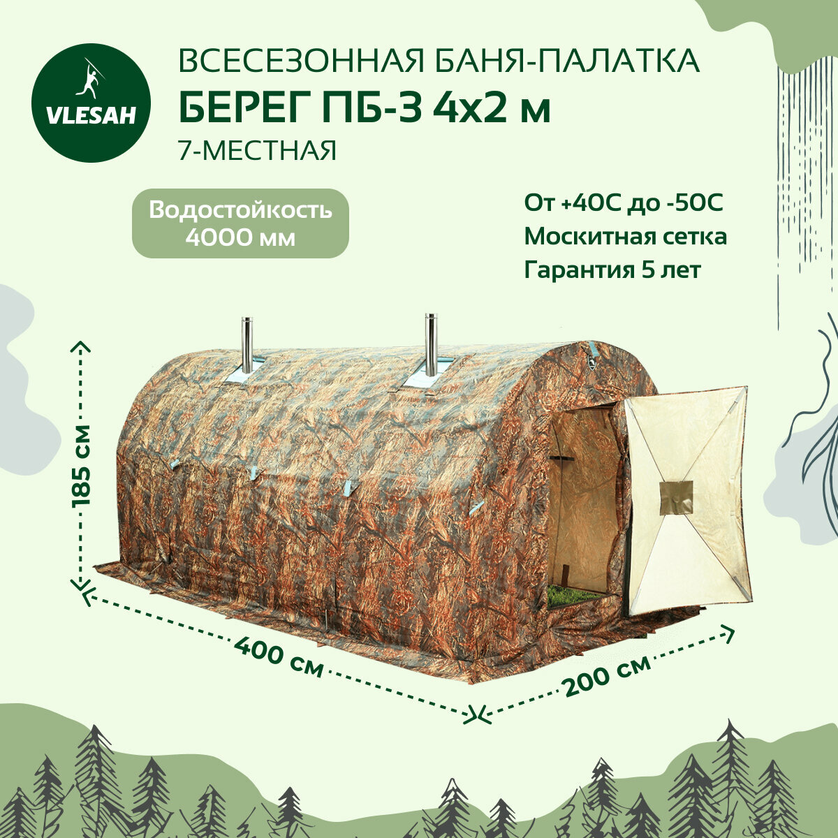 Палатка-баня походная Берег ПБ-3 (4×2 м) – двойное удовольствие в одной палатке!