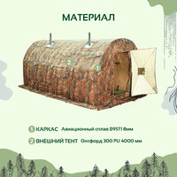 - Палатка-баня 4×2 м с каркасом из авиационного сплава В95Т1