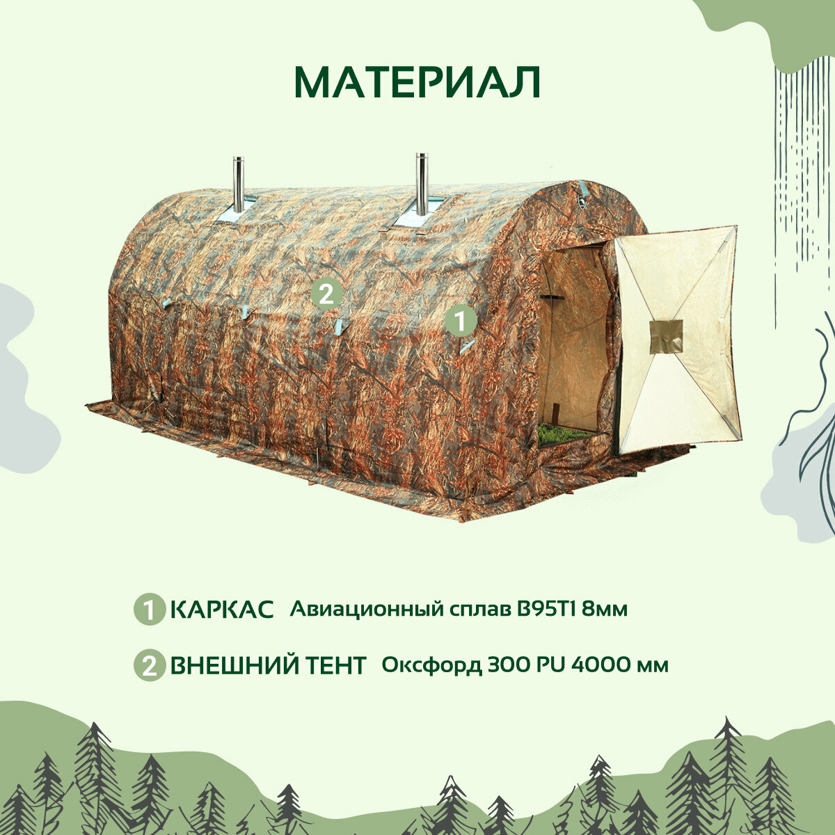 - Внешний тент: Oxford 300 PU 4000 мм (не боится дождя и снега)