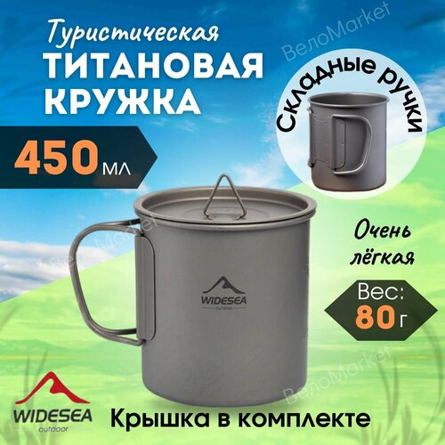 Титановая кружка с крышкой- незаменимая вещь в походе, имея в своем туристическом рюкзаке походную посуду Вы всегда сможете подогреть на костре себе любой напиток или горячий суп или набрать воды для умывания. Она станет вашим верным спутником в долгом походе или маленьком пикнике. Чашка из титана обладает незаменимым качеством долговечности и не склонная к коррозии. Армейская кружка универсальна своей компактностью, легкостью и эргономичностью, не занимает много места в тактической сумке благодаря складной ручке и не большого размера (9 см на 9 см) хотя объем ее 450 мл, которого хватит на большую кружку чая или порцию горячего аппетитного супа. Внутри кружки есть мерная шкала если понадобится набрать необходимое кол-во воды. Посуда для туризма из титанового сплава очень легкая что не идет в ущерб прочности. Титан – очень крепкий металл. Его сложно поцарапать. Несмотря на тонкие стенки титановой кружки, ее трудно смять. Кстати, благодаря ее тонкости, посуда быстро прогревается, и вода закипает очень быстро. Важное отличие кружки widesea от обычной металлической то что титановая посуда не ржавеет, не окисляется, и не дает никаких привкусов вашей пище и напиткам. Практическое применение для любых видов отдыха: рыбалка, кемпинг, поход, путешествия, охота, военная, для армии, пикник, вело и пешие прогулки, походы в горы, в лес или даже на море. Также она сможет послужить интересным и уникальным подарком на 23 февраля, день рождения или любой другой праздник своему мужчине, мужу, брату или папе.