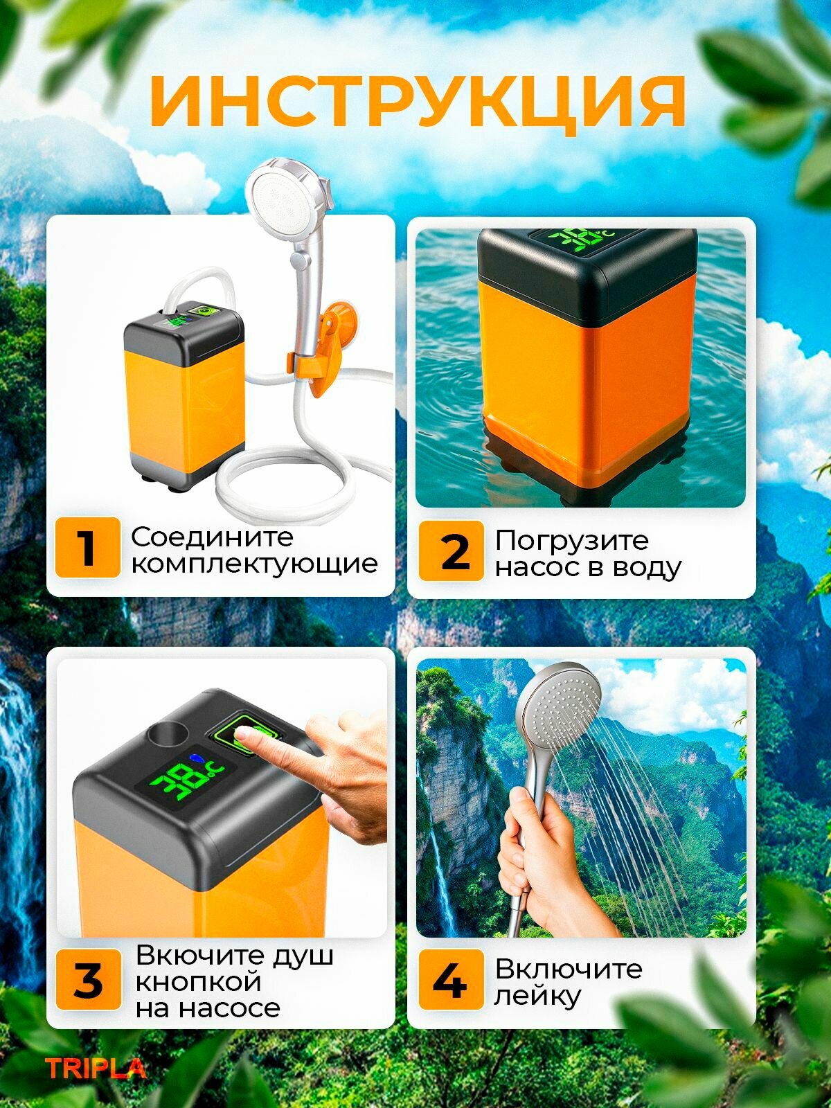 Забудьте о дискомфорте и неудобствах во время отдыха на природе или в путешествии! Портативный мини-душ – это революционное решение для всех, кто ценит комфорт и гигиену вне дома. Представьте себе: вы на рыбалке, в походе, на даче, даже в экстремальных условиях – и у вас под рукой всегда есть возможность принять освежающий душ. Это больше, чем просто удобство – это гарантия чистоты и свежести в любой ситуации. Этот незаменимый гаджет станет вашим верным спутником в любых путешествиях, будь то сплав по реке, поход в горы или просто отдых на природе с семьей. Мини-душ – это компактная и продуманная система, легко помещающаяся в рюкзак или багажник автомобиля. Он невероятно практичен и прост в использовании. Комплектация включает в себя все необходимое: сам насос, лейку душа с удобным держателем и несколькими вариантами крепления (крючок, присоска), позволяющими адаптировать его к различным условиям. Душевая лейка изготовлена из высококачественных материалов, обеспечивающих долгий срок службы и приятные тактильные ощущения. Насос работает от мощного встроенного аккумулятора емкостью 4800 мАч, что обеспечивает непрерывную работу до 120 минут – более чем достаточно для полноценного душа. Зарядка осуществляется через стандартный USB-разъем, что делает его совместимым практически с любым источником питания: повербанк, автомобильный прикуриватель, обычная зарядка от телефона – выбирайте любой удобный вариант. Зарядить аккумулятор можно заранее дома, что удобно и практично, либо подзарядить прямо в машине во время длительного путешествия. Прощайте, неудобства поиска источников воды и электричества! Вам лишь нужно набрать воды в ведро, емкость, реку или озеро – любой источник чистой воды подойдет. Для любителей более теплой воды, достаточно оставить емкость с водой на солнышке некоторое время. Погрузите насос в воду, включите его – и вот он, ваш персональный душ, готовый к использованию в любое время и в любом месте. Этот мини-душ – это не просто душ, а универсальный помощник. Его можно использовать для полива растений на даче, мытья машины или велосипеда, даже для уборки двора! Многофункциональность этого устройства делает его выгодным приобретением для различных нужд. Этот незаменимый помощник станет вашим лучшим другом в путешествиях, на отдыхе, да и просто дома. Он компактен, надежен, прост в использовании, а его доступная цена приятно удивит. Забудьте о неудобствах и дискомфорте, подарите себе комфорт и чистоту в любой ситуации. Независимость от электричества и водопровода сделает ваш отдых поистине незабываемым. Качество материалов и надежная конструкция гарантируют долгий срок службы этого устройства. Приобретая портативный мини-душ, вы инвестируете в удобство, комфорт и гигиену, которые всегда будут под рукой, где бы вы ни находились. Не сомневайтесь, это устройство станет одним из самых ценных и часто используемых предметов в вашем снаряжении, как для активного отдыха, так и для повседневной жизни. Вы не пожалеете о своем выборе, убедитесь в этом сами!