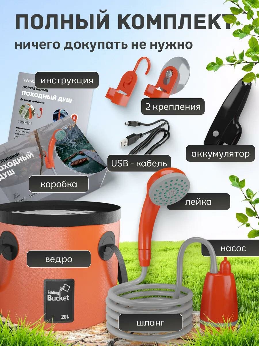 Когда вы находитесь на природе, вы хотите, чтобы вам было комфортно и гигиенично. Но в поход иногда меньше всего хочется тащить с собой тяжелый набор для душа, наполненный бутылками, шлангами и насосами. С нашими походными душами вы избавитесь от всех этих хлопот. Наши души легкие и портативные - вы можете брать их с собой куда угодно: в походы, пикник, путешествие! Они выполнены в универсальных цветах, обладают стильным дизайном. Это идеальный душ для всех туристов: мужчин, женщин, любителей острых ощущений. И это не обычный душ - он оснащен множеством полезных функции. Предусмотрены присоски и крючки, обеспечивающие надежное крепление лейки. Они прочно удерживают душ на любой поверхности (например, в багажнике автомобиля или на столе для пикника, палатке, дереву). Гибкие шланги легко поворачиваются для легкого доступа под любым углом (даже на высоте). Душ со складным основанием, которое позволяет легко хранить его, когда он не используется. Изделие оснащено компактной, но мощной системой всасывания воды, регулятором ее потока. Это все существенно повышает уровень использования данного набора. Так что независимо от того, собираетесь ли вы в поход на заднем дворе или в экспедицию по тропическим лесам Амазонки, у нас есть решение для вас! Такой летний душ может смело использоваться на даче. Ему без труда найдется место на дачном и садовом участке. Он идеален для кемпинга, туризма, активного отдыха на природе, охоты, рыбалки, поездки на море дикарем. Электрический насос с питанием от автомобильного прикуривателя. В наборе прилагается мешок для хранения мини - мойки. Чехол обеспечит сохранность пластиковой насадки с регулировкой и всех остальных аксессуаров для уличных женских и мужских гигиенических процедур. Кемпинговый душевой инвентарь идеален для использования в полевых условиях. Разборная конструкция невероятно удобна в использовании, может использоваться на улице для мытья головы, посуды, машины, полива, полноценных водных процедур. В комплекте есть все приспособления, позволяющие справиться с этой задачей и облегчить жизнь путешественника. Благодаря тому, что в наборе есть навесной крюк для подвешивания на шатер, водные процедуры на открытой местности становятся максимально комфортными. Универсальное подвесное оборудование может использоваться как экспедиционное, поливочное. Простое устройство с экономным расходом не вызовет трудностей в эксплуатации. Душ изготовлен из качественных материалов, оснащен надежным держателем, пригодится каждому человеку и будет активно использоваться в различных случаях. У нас есть акции и распродажи, вы можете купить наши товары в подарок со скидкой!