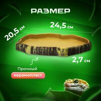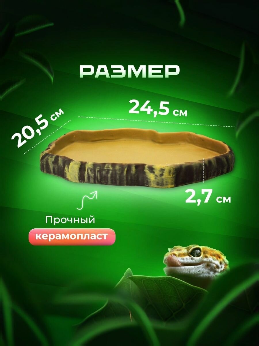 Поилка для животных кормушка для рептилий и террариума Simple Zoo, 245х200х27 мм – это идеальное решение для тех, кто заботится о своих питомцах и стремится обеспечить им комфортные условия. Изготовленная из прочного керамопласта, поилка для рептилий станет надежным элементом вашего террариума, гарантируя безопасность и долговечность. Благодаря продуманному дизайну, эта поилка и кормушка подходит для разнообразных животных, будь то рептилии, черепахи, улитки или мелкие грызуны. Размер флет кормушки 245 мм в длину, 200 мм в ширину и 27 мм в высоту. Поилка для террариума достаточно просторная емкость, позволяющая использовать её как для воды, так и для пищи. Невысокие бортики облегчают доступ к содержимому, что особенно важно для мелких рептилий и животных с ограниченной подвижностью. Простота использования делает кормление ваших питомцев лёгким и беспроблемным, ведь поилка устойчива от переворачивания и имеет внутренний порожек, который исключает возможность застревания питомца. Ключевое преимущество этого аксессуара заключается в его универсальном дизайне. Имитация натурального камня позволяет органично вписать его в любой террариум, создавая естественную и комфортную обстановку для ваших любимцев. Керамопласт — это не только эстетически привлекательный материал, но и практичный: он гипоаллергенный, безопасный для животных и не окрашивает ни продукты, ни окружающие предметы. Может использоваться как кормушка для грызунов и кормушка для хомяка. Кормушка для аквариума легко моется, благодаря гладкой поверхности, которая не царапает животных и предотвращает накопление грязи. Это особенно важно для поддержания чистоты в террариуме и сохранения здоровья вашего питомца. Материал кормушка для рептилий устойчив к воздействию воды и не подвержен коррозии, что делает эту поилку долговечным решением для вашего террариума. Она не нагревается от внешних источников тепла, что обеспечивает комфорт для животных, даже если террариум расположен в тёплой зоне. Форма поилка для змей также стимулирует естественное пищевое поведение рептилий. Это важно для здоровья и благополучия питомцев, поскольку имитирует привычные для них условия в дикой природе. Просторный дизайн кормушка для черепах позволяет использовать её не только для подачи пищи и воды, но и как купалку, что особенно ценно для черепах и других водолюбивых видов. Кормление и уход за вашими рептилиями становится более удобным и эффективным. Прочность и износостойкость керамопласта делает этот аксессуар незаменимым для долгосрочного использования. Он устойчив к ударам и не деформируется под воздействием влаги, что делает его отличным выбором для любых террариумов и аквариумов. Такой материал гарантирует, что даже при активном использовании поилка останется в отличном состоянии на протяжении многих лет. Если вы ищете практичное решение для своего террариума, поилка Simple Zoo — идеальный вариант. Поилка для улиток создаёт естественную среду для ваших животных, делая их уход лёгким и эффективным. Простота в обслуживании, безопасность материалов и продуманная конструкция делают её лучшим выбором для всех, кто заботится о здоровье и благополучии своих питомцев.