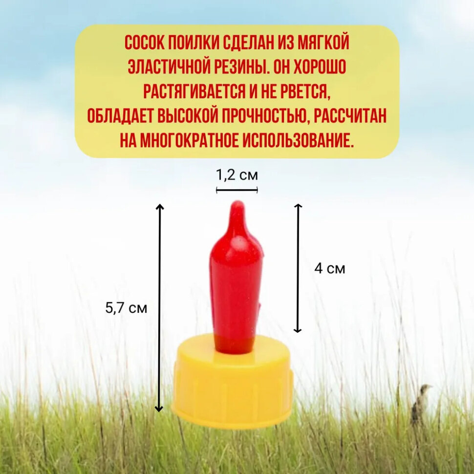 Соска для поения на бутылку предназначена для кормления молодых животных, подойдет как для домашних животных, например щенков, так и для сельскохозяйственных животных - ягнят, поросят, телят, козлят и жеребят. Соску легко использовать, она устанавливается на стандартную ПЭТ бутылку. Перед использованием поилки необходимо сделать небольшое отверстие в верхней части соски, размер отверстия делается в зависимости от вашего животного. Поилка для выкармливание козлят, ягнят представляет собой пластиковую крышечку с резьбой, в которую встроена мягкая резиновая соска. Данная соска накручивается на любую ПЭТ бутылку, которая есть у вас дома. В корпусе крышечки есть специальный воздушный клапан, который обеспечивает прохождение воздуха во время сосания молока. Сосок поилки сделан из мягкой эластичной резины который хорошо растягивается и не рвется. Соска обладает высокой прочностью и рассчитана на многократное использование. Длина соска 4 см, диаметр 1,2 см. Поилка соска для козлят и телят на ПЭТ бутылку с крышкой обеспечивает комфортное и гигиеничное кормление вашего питомца. Она имеет специальную форму, которая идеально подходит для рта маленького животного. Соска для кормления поросят изготовлена из высококачественного антибактериального материала, который не вызывает аллергии и не задерживает запахи. Вы можете быть уверены, что ваш питомец получает только свежую и чистую воду или молоко. Поилка соска для поения на ПЭТ бутылку – это не только удобный и практичный аксессуар, но и надежный помощник в вопросе кормления животных. Благодаря этой поилке вы сможете легко и безопасно кормить своего малыша, не беспокоясь о его здоровье и комфорте.