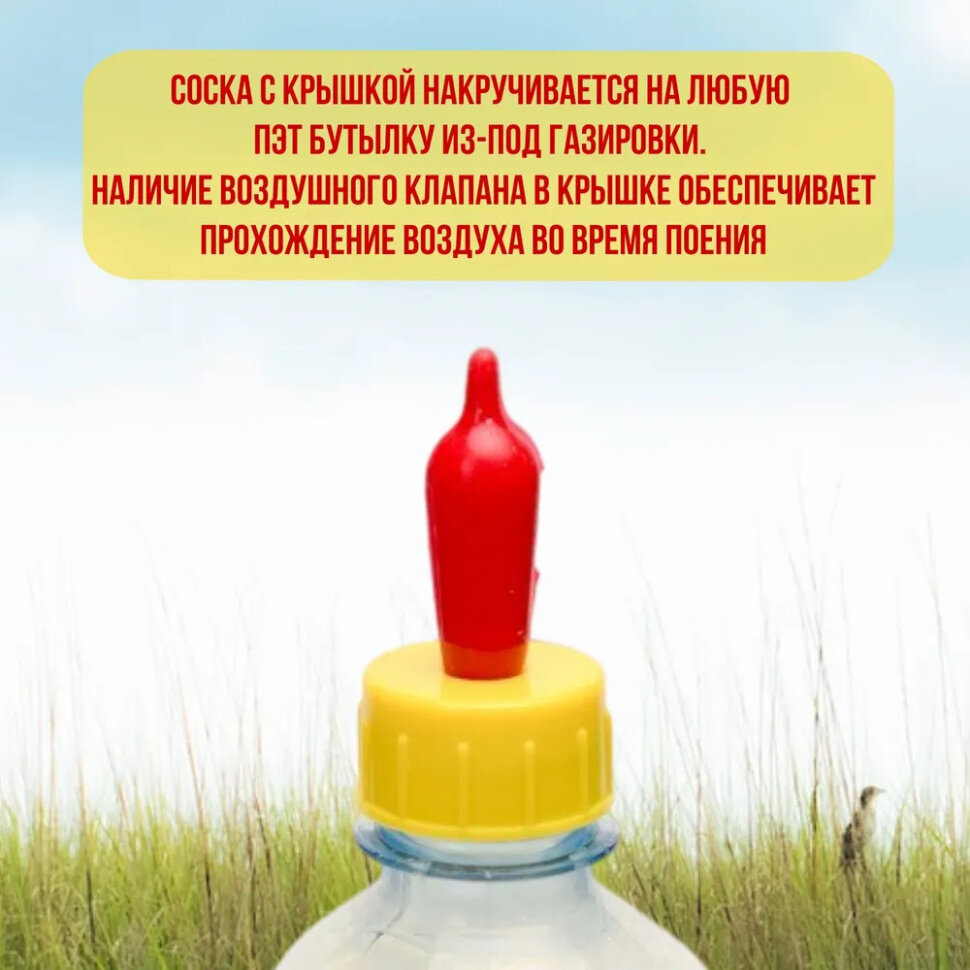 Соска для поения на бутылку предназначена для кормления молодых животных, подойдет как для домашних животных, например щенков, так и для сельскохозяйственных животных - ягнят, поросят, телят, козлят и жеребят. Соску легко использовать, она устанавливается на стандартную ПЭТ бутылку. Перед использованием поилки необходимо сделать небольшое отверстие в верхней части соски, размер отверстия делается в зависимости от вашего животного. Поилка для выкармливание козлят, ягнят представляет собой пластиковую крышечку с резьбой, в которую встроена мягкая резиновая соска. Данная соска накручивается на любую ПЭТ бутылку, которая есть у вас дома. В корпусе крышечки есть специальный воздушный клапан, который обеспечивает прохождение воздуха во время сосания молока. Сосок поилки сделан из мягкой эластичной резины который хорошо растягивается и не рвется. Соска обладает высокой прочностью и рассчитана на многократное использование. Длина соска 4 см, диаметр 1,2 см. Поилка соска для козлят и телят на ПЭТ бутылку с крышкой обеспечивает комфортное и гигиеничное кормление вашего питомца. Она имеет специальную форму, которая идеально подходит для рта маленького животного. Соска для кормления поросят изготовлена из высококачественного антибактериального материала, который не вызывает аллергии и не задерживает запахи. Вы можете быть уверены, что ваш питомец получает только свежую и чистую воду или молоко. Поилка соска для поения на ПЭТ бутылку – это не только удобный и практичный аксессуар, но и надежный помощник в вопросе кормления животных. Благодаря этой поилке вы сможете легко и безопасно кормить своего малыша, не беспокоясь о его здоровье и комфорте.