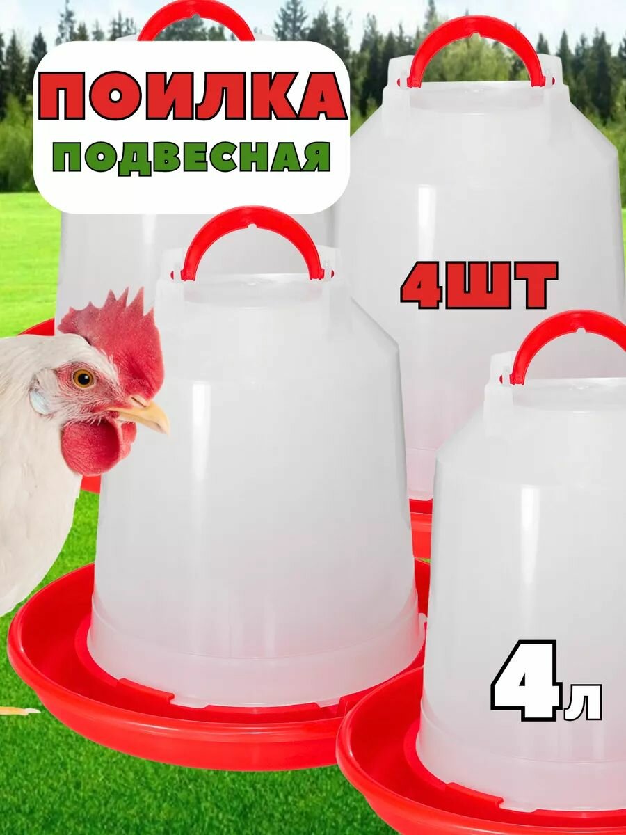 Купить Поилка вакуумная подвесная 4л для кур 4шт с доставкой по всей России. Поилка вакуумная подвесная 4л для кур 4шт: сравнение цен, характеристики, фото, актуальное наличие и цены.