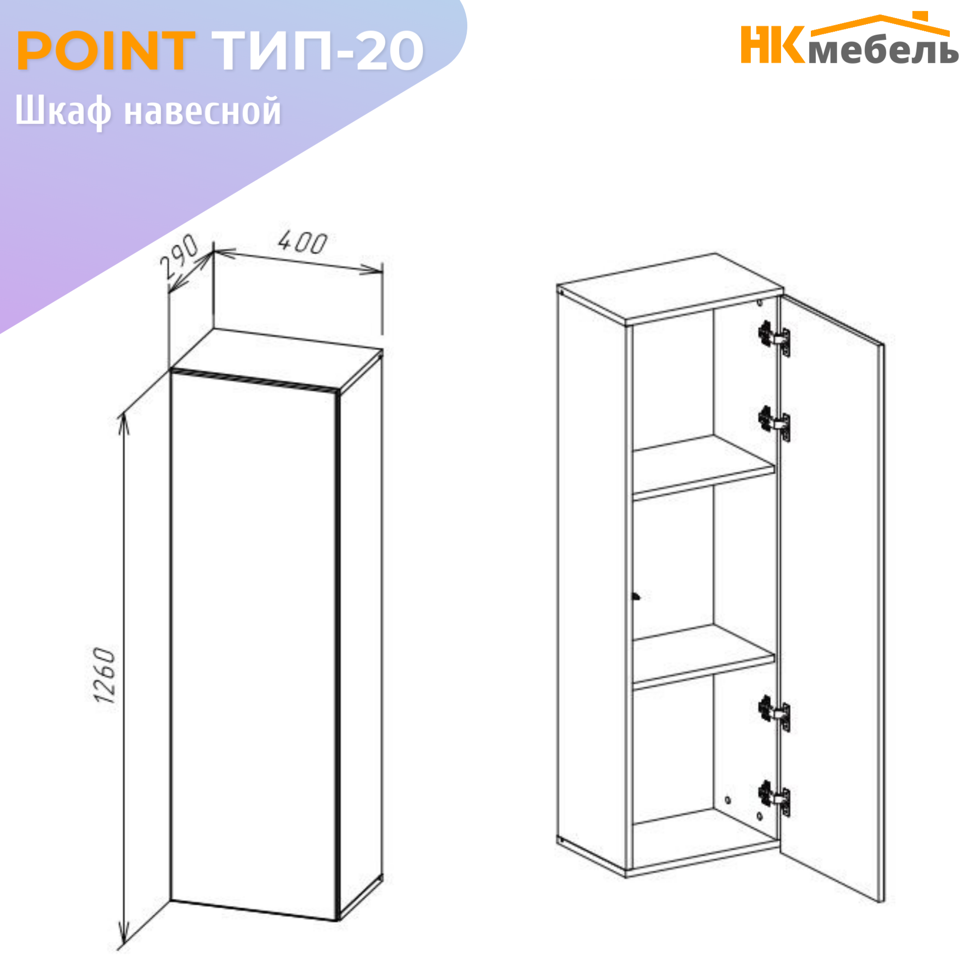 POINT ТИП-20 шкаф навесной, 40 х 126 х 29 см, МДФ/ЛДСП, Белый/Белый глянец: сравнение цен, характеристики, фото, актуальное наличие и цены.