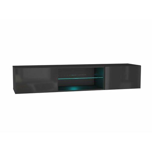 POINT ТИП-33 шкаф навесной Чёрный/Чёрный глянец ТВ-тумба Поинт за счет скрытого крепления и отсутствия внешней фурнитуры выглядит так, словно парит в воздухе. Модель отлично подходит для установки монитора большой диагонали и размещения сопутствующей аппаратуры. В центре расположена открытая стеклополка.