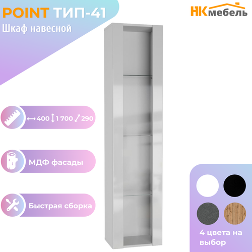 POINT ТИП-41 шкаф-витрина навесной, 40 х 170 х 29 см, МДФ/ЛДСП, Белый/Белый глянец: сравнение цен, характеристики, фото, актуальное наличие и цены.