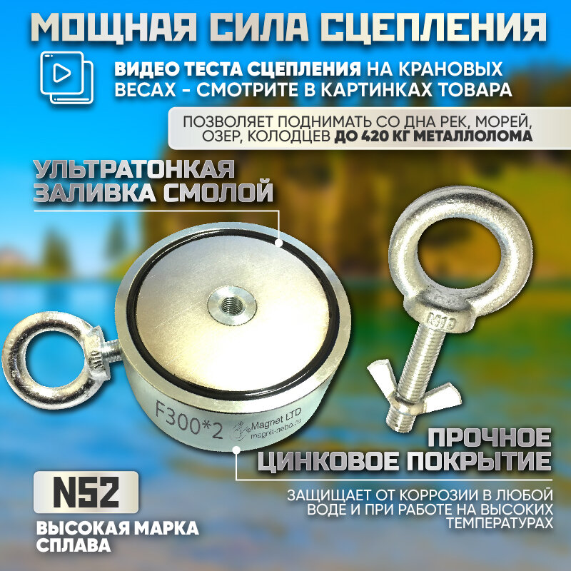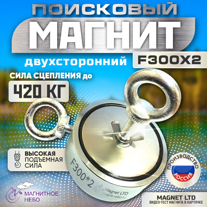 ПОИСКОВЫЙ МАГНИТ ДВУХСТОРОННИЙ Magnet LTD F300х2, сила сц. до 420 кг +20 метров верёвка: сравнение цен, характеристики, фото, актуальное наличие и цены.
