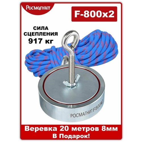 Поисковый магнит двухсторонний Росмагнит F-800х2, сила сц. 916 кг (с веревкой20м 8мм): сравнение цен, характеристики, фото, актуальное наличие и цены.