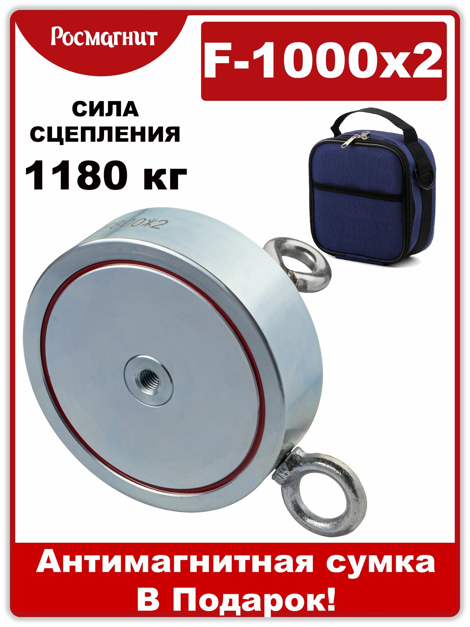 Купить Поисковый магнит двухсторонний Росмагнит F1000х2, сила сц. 1180 кг (с сумкой) с доставкой по всей России. Поисковый магнит двухсторонний Росмагнит F1000х2, сила сц. 1180 кг (с сумкой): сравнение цен, характеристики, фото, актуальное наличие и цены.