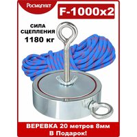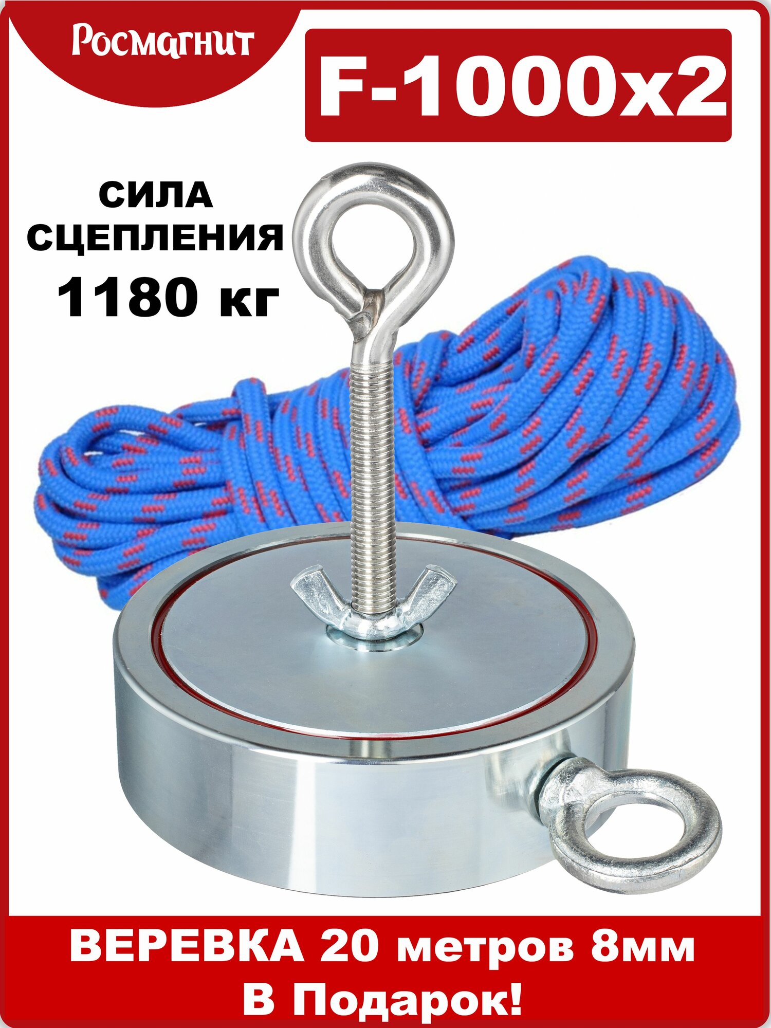 Поисковый магнит двухсторонний Росмагнит F1000х2, сила сц. 1180 кг (с веревкой 20м 8мм): сравнение цен, характеристики, фото, актуальное наличие и цены.