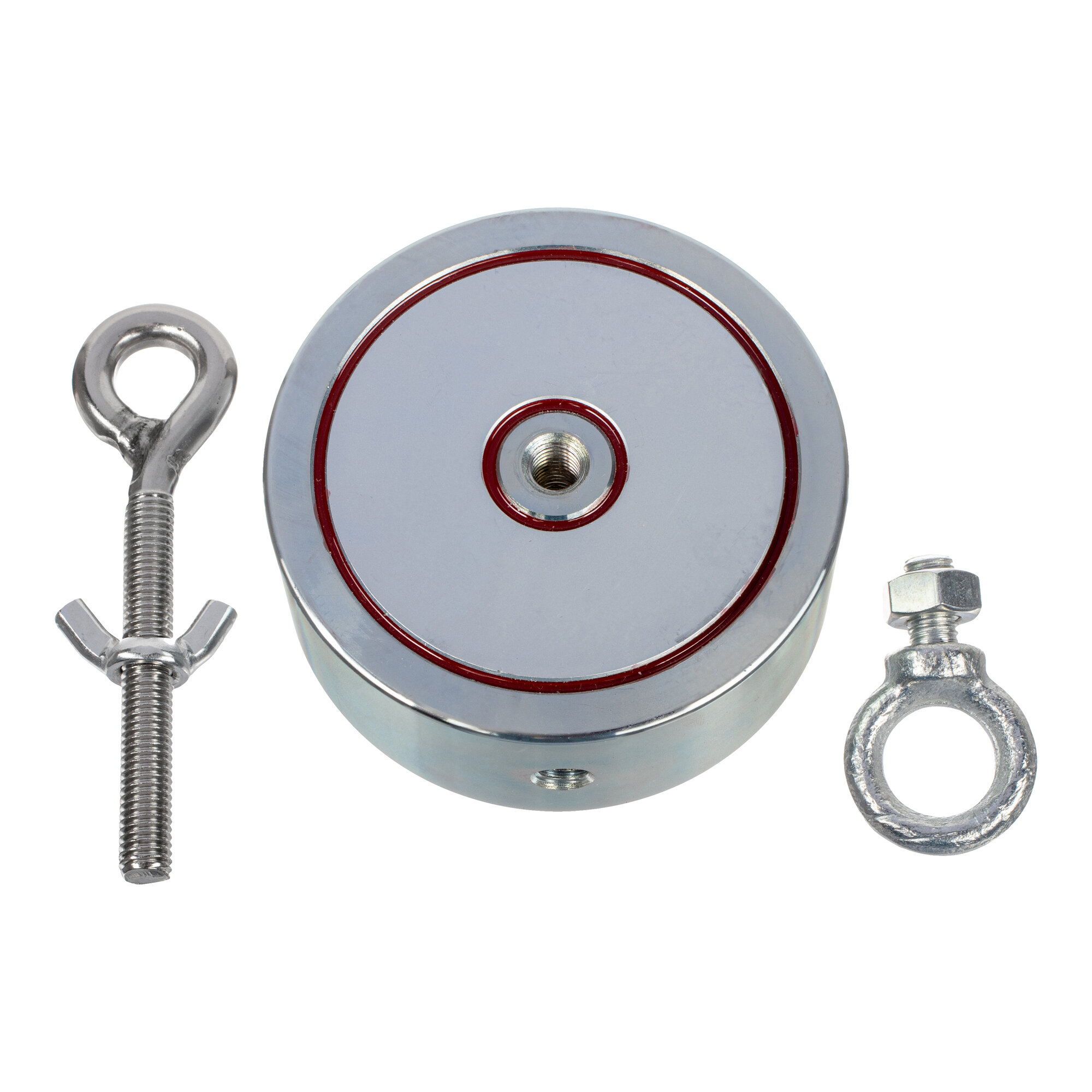 Ещё больше возможностей поиска предоставляет использование двухсторонних магнитов "Росмагнит". Кольца на двухстороннем поисковом магните Росмагнит F-400*2 позволяют точнее выбирать позицию и манипулировать устройством. С ним можно искать в мутной воде металлические предметы разного размера.
