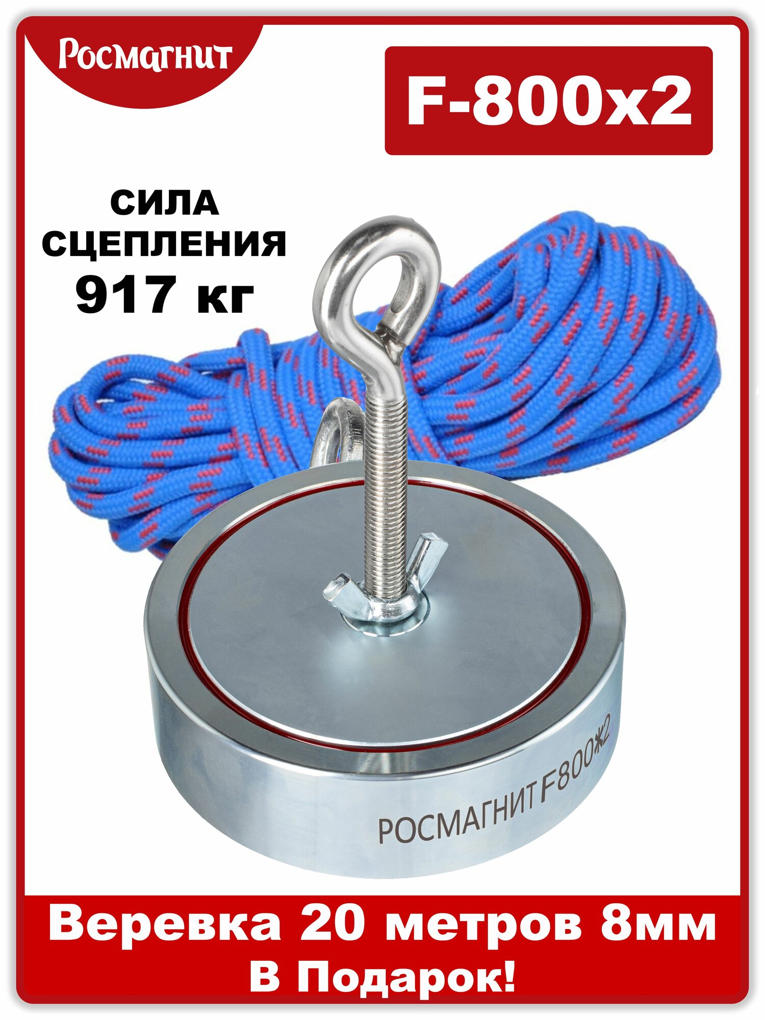 Поисковый магнит двухсторонний Росмагнит F-800х2, сила сц. 917 кг (с веревкой20м 8мм): сравнение цен, характеристики, фото, актуальное наличие и цены.