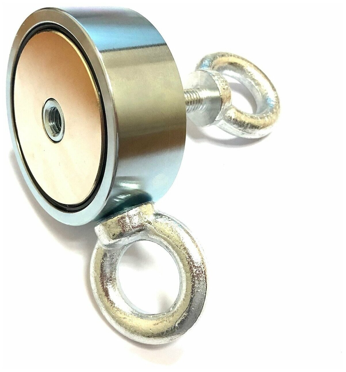Поисковый магнит выдерживает до 200 кг металлолома. Его можно поднимать со дна морей, рек, озёр, котлованов. Конструктивные особенности изделия: прочный металлический корпус, который не дает рассеиваться магнитному полю; цинковое покрытие, защищающее от коррозии в водной среде; два рым-болта, позволяющие использовать магнит в двух положениях.