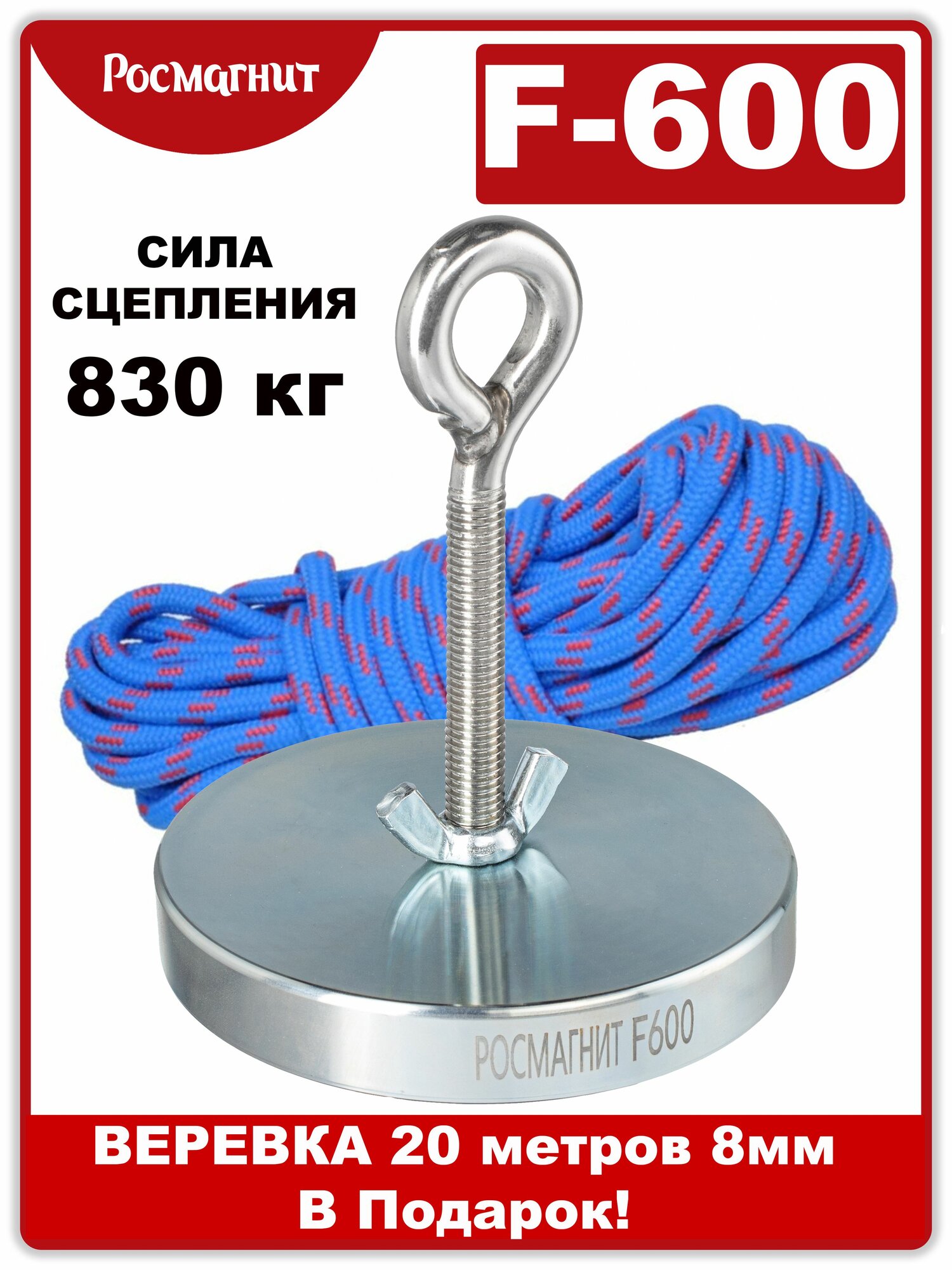 Поисковый магнит односторонний Росмагнит F600, сила сц. 830 кг (с веревкой 20м 8мм): сравнение цен, характеристики, фото, актуальное наличие и цены.