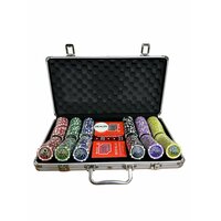 100% пластиковые карты в каждом наборе только для наших клиентов. Обратите внимание на лимитированный и очень практичный номинал фишек - 5, 25, 50, 100, 500,1000. Прекрасный выбор для ценителей покера, которые желают играть в любимую игру в комфортной обстановке. Набор для покера 300 фишек порадует игроков, как своим качеством, так и доступной ценой. Изюминкой набора является стильный стикер, с помощью которого выполнено нанесение номинала. Сукно покер в подарок.