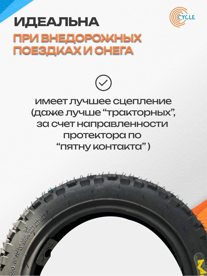 ✅ идеальна для бездорожья И снега: Уникальный направленный рисунок протектора обеспечивает превосходное сцепление с рыхлыми поверхностями, грязью и снегом, превосходя по эффективности даже классические "тракторные" покрышки.