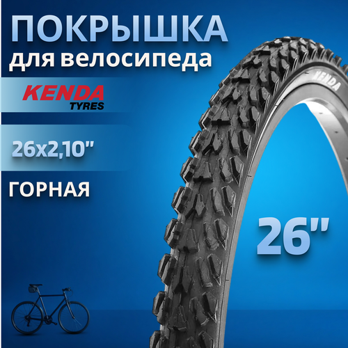 Велопокрышка 26" КENDA 26x2,10 22TPI K-870. Велопокрышка для велосипеда мужского и женского с диаметром колес 26 дюймов КENDA, без камеры, тип покрышки: горная. Обеспечивает максимальное сцепление с дорогой, для агрессивной езды по тропам, лесу и сложному грунту. Направленный рисунок протектора обеспечивает контроль на сыпучих покрытиях, небольшая высота велорезины центральной части протектора придает покрышке отличный накат. Теперь Ваш велосипед не поскользнется даже в грязи при условии плохой погоды. За счет такого проектора данная покрышка устойчива к проколам. Велосипедная покрышка идет в комплекте без камеры, велокамеру нужно приобретать для велосипеда отдельно. Велопокрышки – это велосипедные шины (велосипедная покрышка). Упругая резиновая велопокрышка с металлическим или полимерным кордом устанавливается на обод колеса. Между ободом колеса и покрышкой обеспечивают воздух под давлением для гашения толчков и ударов, возникающих при движении, например - размещается камера велосипедная, которая надувается воздухом. Благодаря нагнетанию давления в велосипедные покрышки обеспечивается возможность регулировать жесткость под конкретное дорожное полотно. Покрышки обеспечивают контакт велосипеда с дорожным полотном и дополнительно поглощают незначительные толчки и удары, возникающие при движении из-за несовершенства дорожного покрытия, компенсируют погрешности траекторий колёс. Велосипедная покрышка – неотъемлемый элемент конструкции велосипеда, который в качестве составной велозапчасти содержит колесо для велосипеда.