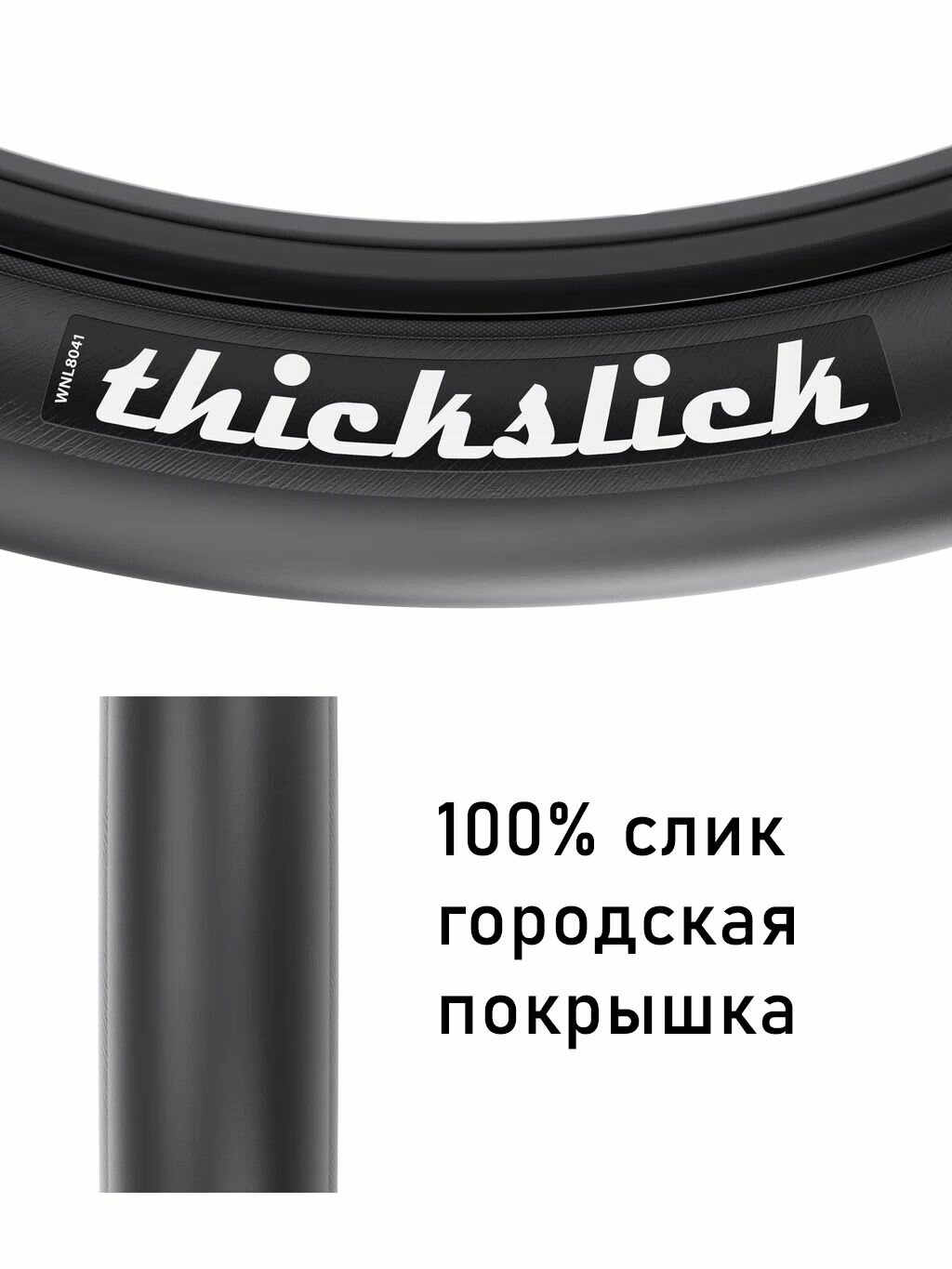Покрышки ThickSlick обеспечивают более плавную езду благодаря естественным поглощающим свойствам толстого слоя резины. Более толстая резина также обеспечивает больше поддержки для вилли или фикс-заносов.