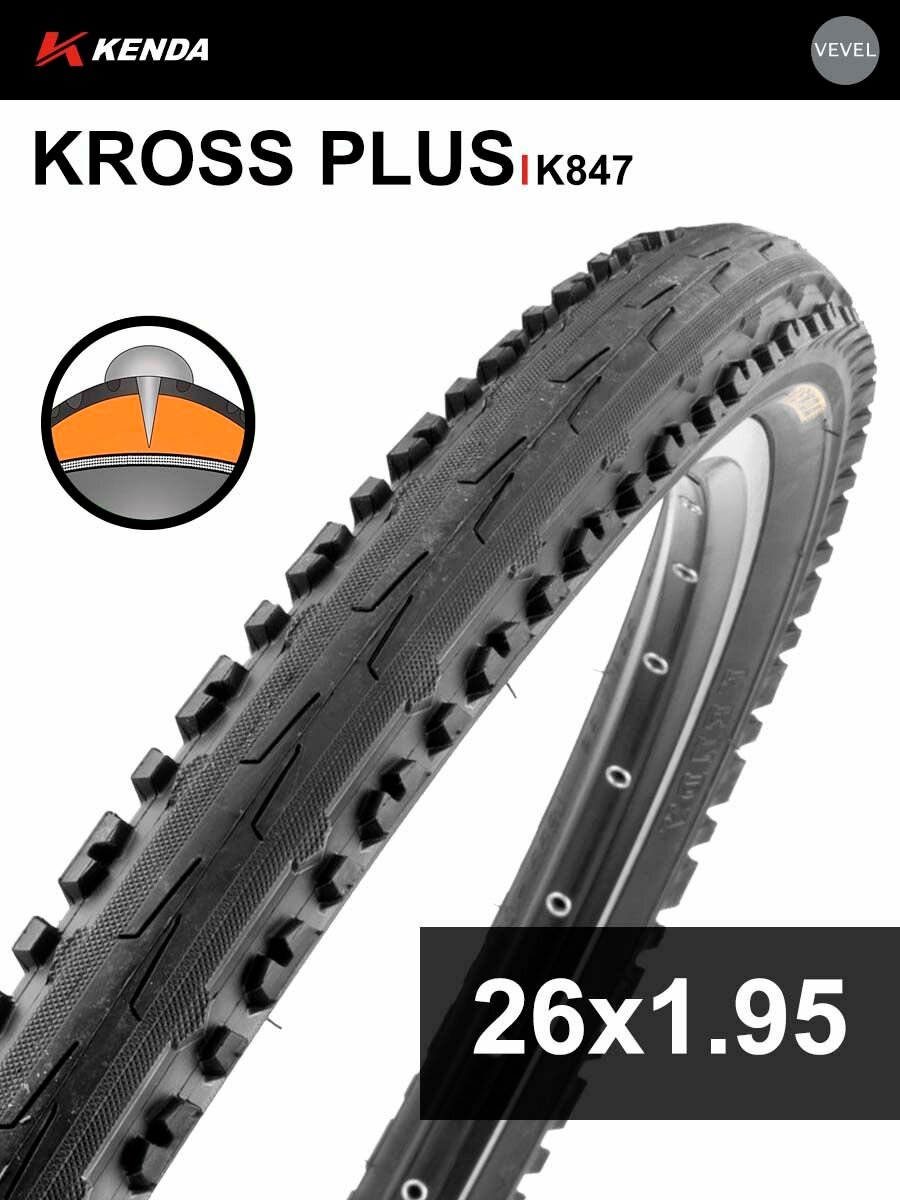 Покрышка велосипедная KENDA KROSS PLUS K847 26×1,95 (50-559), антипрокольная: сравнение цен, характеристики, фото, актуальное наличие и цены.