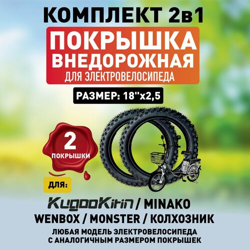 Купить Покрышка внедорожная для электровелосипеда Monster, Minako, Kugookirin, Колхозник, Wenbox. 18*2.5. 2шт с доставкой по всей России.