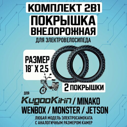 Купить Покрышка внедорожная для электровелосипеда Monster, Minako, Kugookirin, Колхозник, Wenbox. 18*2.5. 2шт с доставкой по всей России.