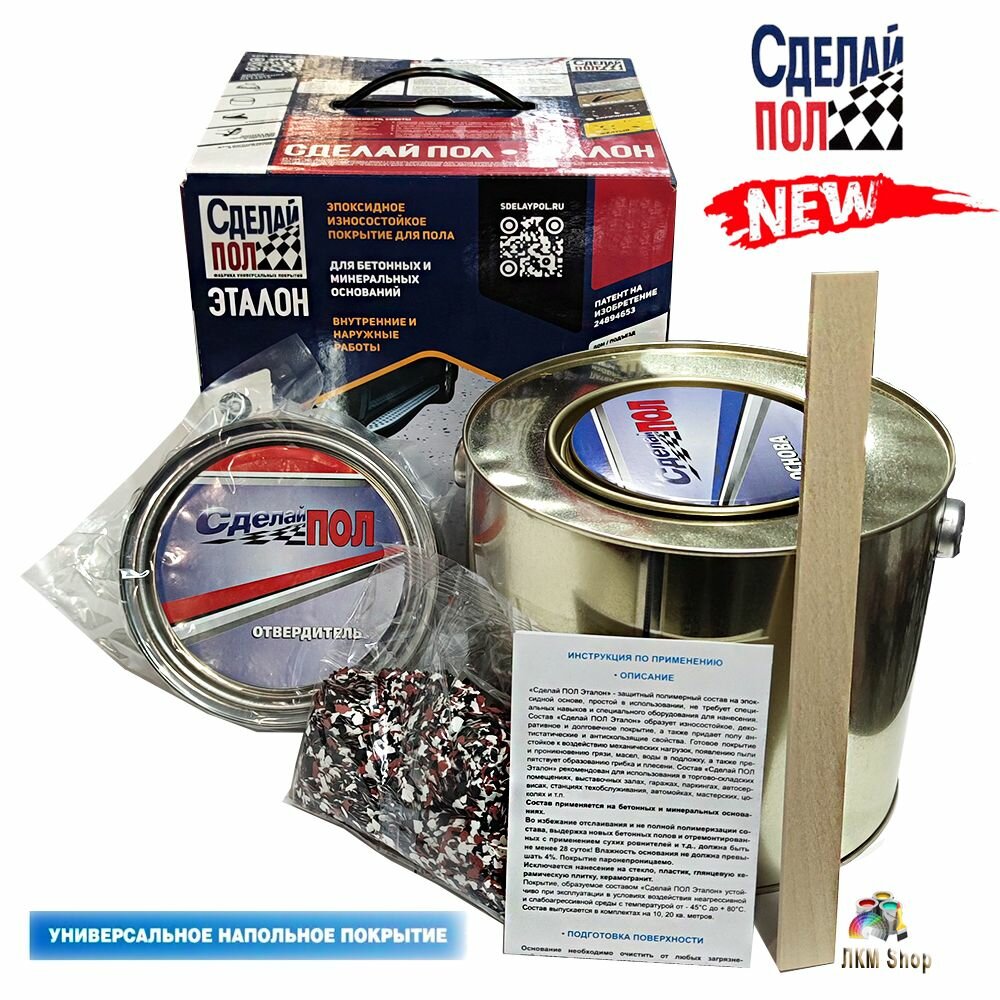 Сделай пол Эталон запатентован и является одним из самых прочных и устойчивых покрытий для пола и не только. Комплект разработан с учетом современных требований к полам и включает все необходимые материалы для быстрой и самостоятельной покраски.