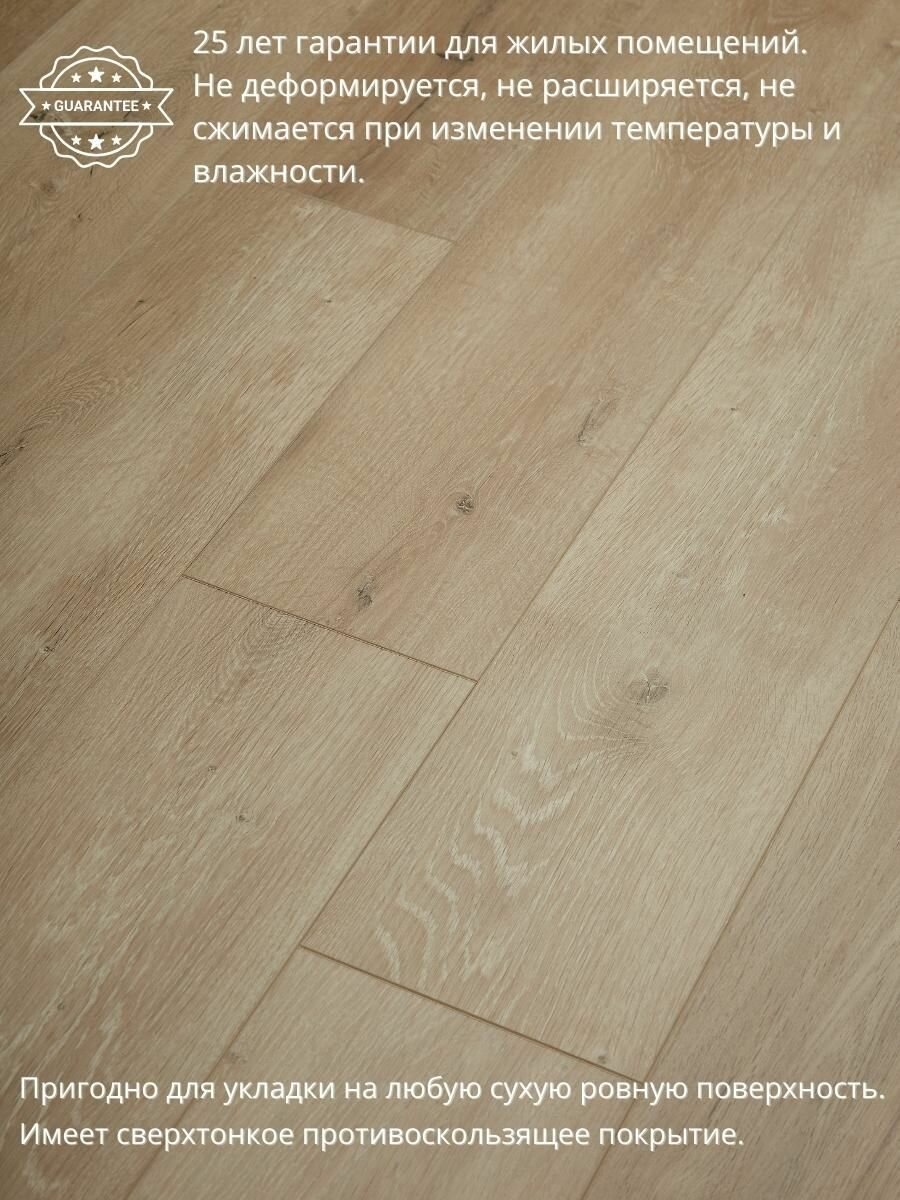 Размер 1 панели - 1220 мм х 183 мм х 4.5 мм. В 1 упаковке - 10 панелей - 2,2326 кв. м. Мы предлагаем Вам толщину панели 4,5 мм с дополнительным износостойким слоем 0,5 мм.