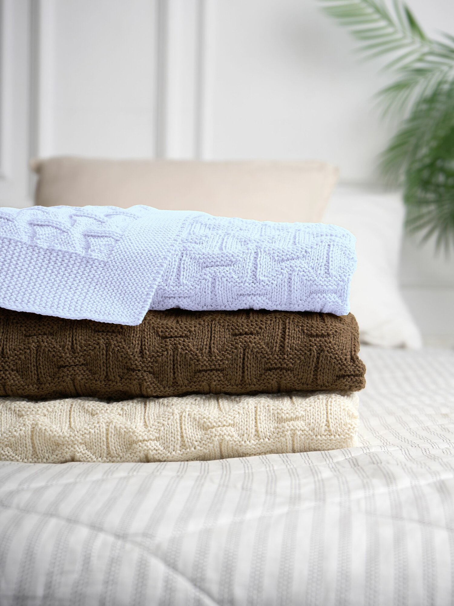 Купить Покрывало для дивана, теплый плед на кровать Wave 160х95 см. Светло-голубой. с доставкой по всей России.