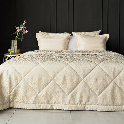 Новая коллекция жаккардовых покрывал Domiano- роскошная классика, богатые фактуры, нежные оттенки, утончённость исполнения. Это жемчужина декоративного искусства, которая привнесет нарядную ноту интерьеру спальни. В комплект входит: стеганное покрывало на подкладе размер 240*260 см. Наволочек в комплекте нет. Состав: ткань портьерная 100% пэ, наполнитель - полиэфирное волокно. Стежка в виде ромбов. Подклад покрывала – микрофибра велюр, за счет своей фактуры он предотвращает скольжение покрывала на кровати. Универсальные размеры покрывала – подходят на кровать шириной 160-180см. Покрывало отлично держит форму, не дает усадку и не мнется. Ванильный. Мягкий, нежный и воздушный цвет. Он навеян сладостями праздничного утра. Это дорогой и сложный оттенок, он привнесет нотку легкости и таинственности вечной классической красоты. Обращаем внимание! Цвета изделий на сайте могут незначительно отличаться от реальных из-за особенностей цветопередачи монитора. Размер: 240 х 260 см, Размер: 240 х 260 см, Наполнитель: Полиэфирное волокно, Цвет: Молочный