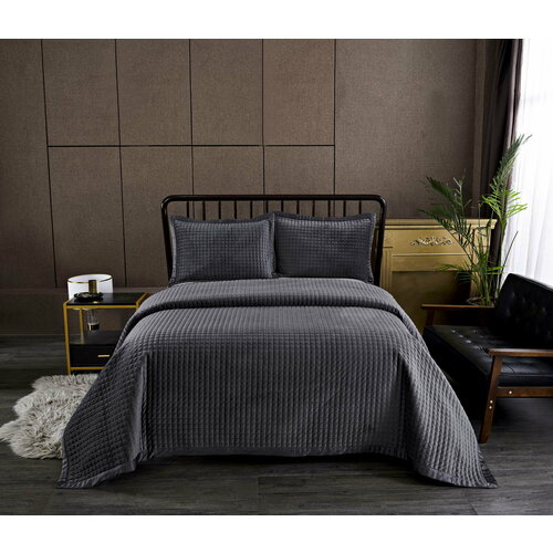 Покрывало стеганое из велюра придаст любой спальне необходимый акцент в интерьере. Как элемент декора покрывало поможет создать в Вашей комнате уютную и комфортную обстановку. Изделие бережно сложено в чемоданчик ПВХ на молнии с логотипом бренда. В комплекте покрывало размером 240х260 см, 2 наволочки размером 50х70 см. Ткань: велюр. Состав: вискоза 100%. Уход: стирка при 30 С. Цвет: стоун.