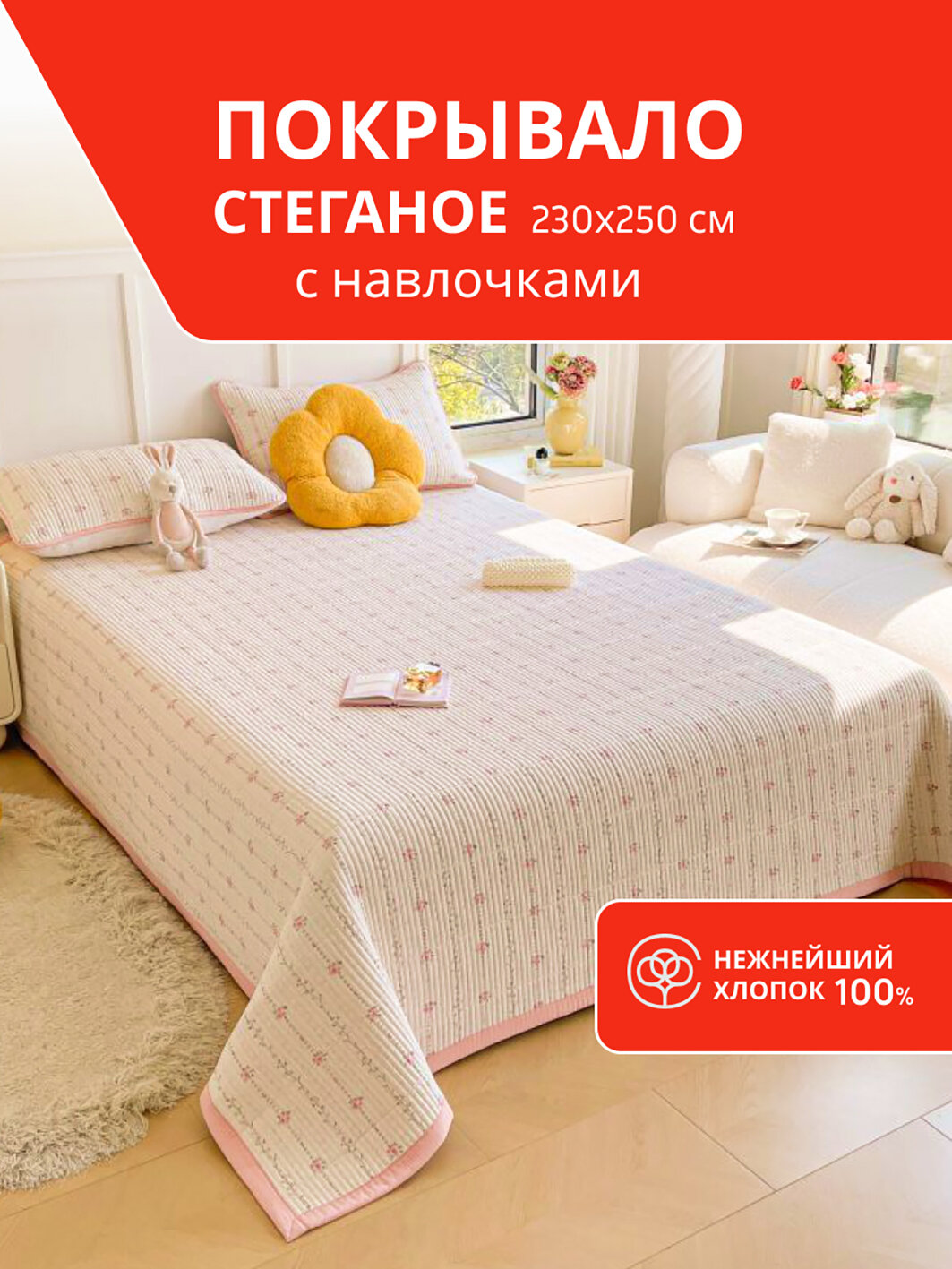 Шикарные комплекты для вашей спальни! Набор состоит из большого стеганного покрывала, размером евро-макси 230 х 250 см и 2=х наволочек 50 х 70 см. Комплект полностью из 100% хлопка, очень мягкий и приятный тактильно. Ткань дышащяя, пожно использовать как одеяло. Наволочки можно использовать не только как декоративный элемент, но и в качестве постельных принадлежностей. Качество пошива очень достойное. Ровная частая стежка, ровная обработка края. Покрывало и наволочки прекрасно держат форму после стирок. Несколько разнообразных принтов на выбор. Есть более спокойные тона, есть яркие и насыщенные. Рисунок ровный, четкий, не вымывается при стирке, не выцветает и не блекнет. Комплект украсит вашу спальню и станет любимой частью интерьера. Пусть в вашем доме всегда будет уютно и красиво!