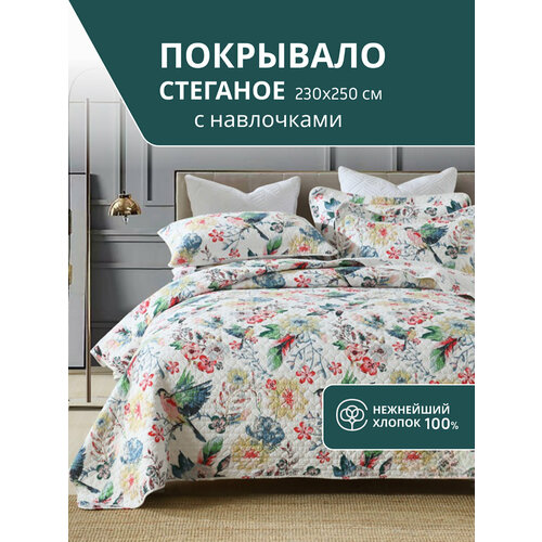 Шикарные комплекты для вашей спальни! Набор состоит из большого стеганного покрывала, размером евро-макси 230 х 250 см и 2=х наволочек 50 х 70 см. Комплект полностью из 100% хлопка, очень мягкий и приятный тактильно. Ткань дышащяя, пожно использовать как одеяло. Наволочки можно использовать не только как декоративный элемент, но и в качестве постельных принадлежностей. Качество пошива очень достойное. Ровная частая стежка, ровная обработка края. Покрывало и наволочки прекрасно держат форму после стирок. Несколько разнообразных принтов на выбор. Есть более спокойные тона, есть яркие и насыщенные. Рисунок ровный, четкий, не вымывается при стирке, не выцветает и не блекнет. Комплект украсит вашу спальню и станет любимой частью интерьера. Пусть в вашем доме всегда будет уютно и красиво!