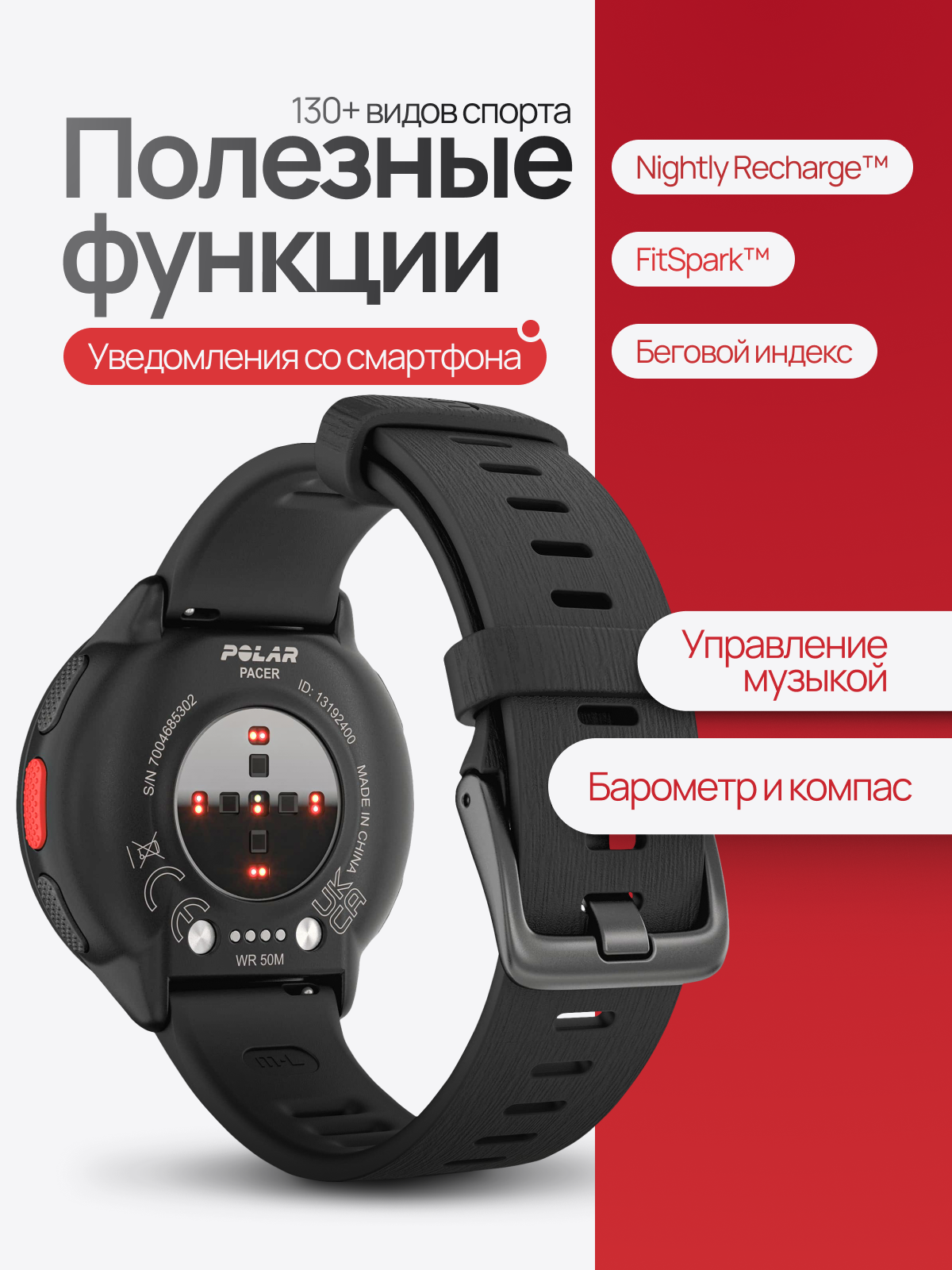 Беговые часы продвинутого уровня с улучшенной скоростью работы, оптическим пульсометром, датчиком GPS, барометром, компасом и специальными тестами для бега. Спортивные часы Polar Pacer Pro – это новинка 2022 года, они получили обновленный более мощный процессор чем остальные часы линейки Polar.