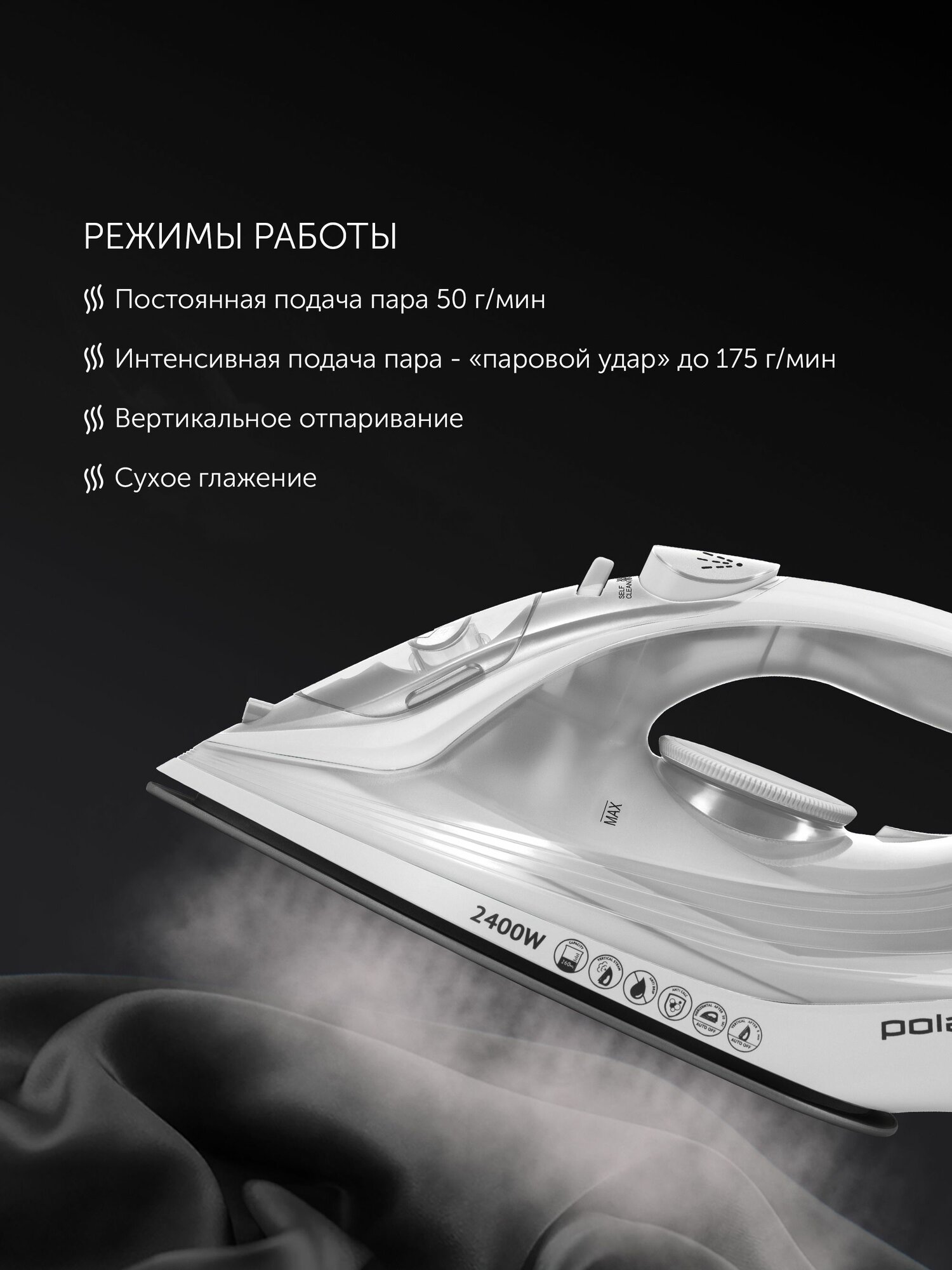 POLARIS Утюг для одежды с отпаривателем PIR 2487AK 3m, керамическое покрытие, паровой удар, Белый: сравнение цен, характеристики, фото, актуальное наличие и цены.