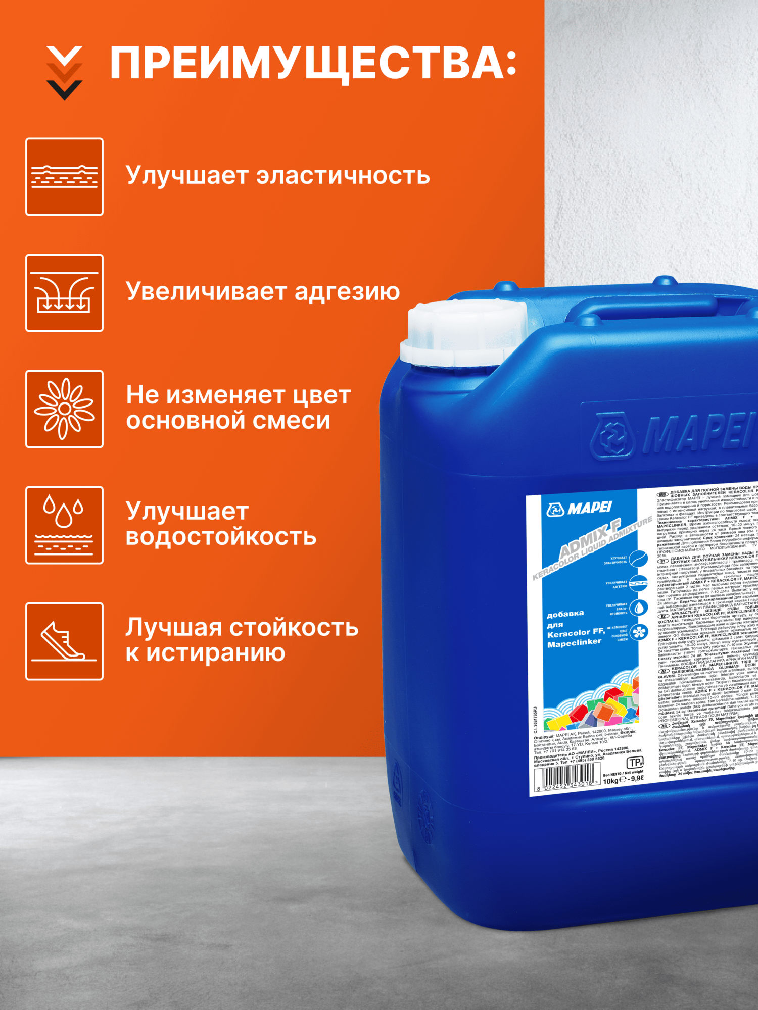 Купить Полимерная добавка MAPEI Admix F, 10 кг с доставкой по всей России. Полимерная добавка MAPEI Admix F, 10 кг: сравнение цен, характеристики, фото, актуальное наличие и цены.